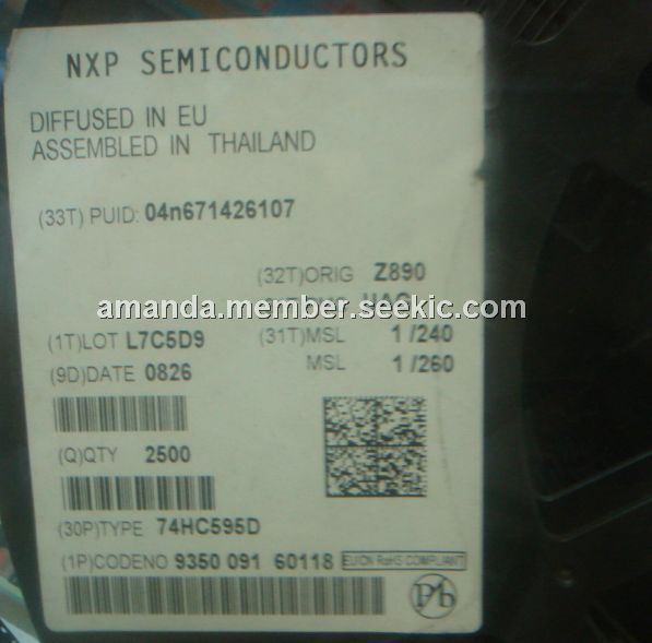74HC595D features: (1)8-bit serial input; (2)8-bit serial or parallel output; (3)Storage register with 3-state outputs; (4)Shift register with direct clear; (5)100 MHz (typical) shift out frequency; (6)ESD protection: HBM EIA/JESD22-A114-A exceeds 2000 V, MM EIA/JESD22-A115-A exceeds 200 V.