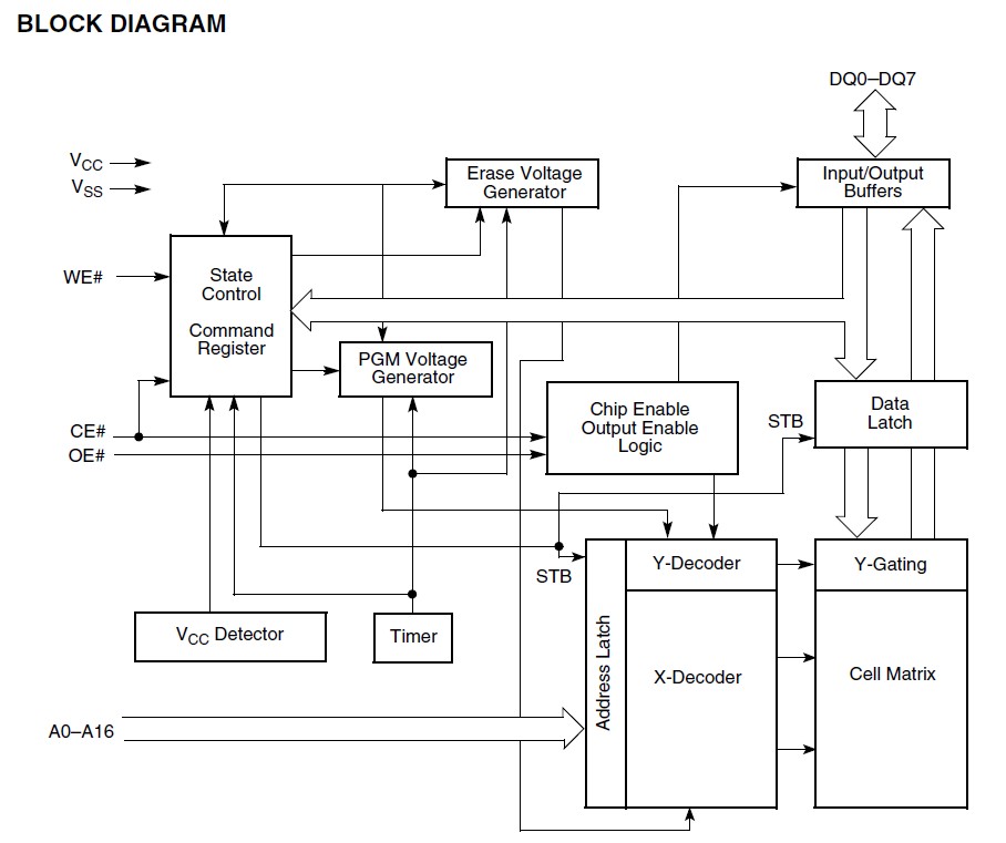 The AM29F010B-55PI is a 1 Mbit, 5.0 Volt-only Flash memory organized as 131,072 bytes. The AM29F010B-55PI is offered in 32-pin PDIP, PLCC and TSOP packages. The byte-wide data appears on DQ0-DQ7. The device is designed to be programmed in-system with the standard system 5.0 Volt VCC supply. A 12.0 volt VPP is not required for program or erase operations. The device can also be programmed or erased in standard EPROM programmers. This device is manufactured using AMD 0.32 μm process technology, and offers all the features and benefits of the Am29F010 and Am29F010A. The standard device offers access times of 45, 55, 70, 90, and 120 ns, allowing high-speed microprocessors to operate without wait states. To eliminate bus contention the device has separate chip enable (CE#), write enable (WE#) and output enable (OE#) controls.