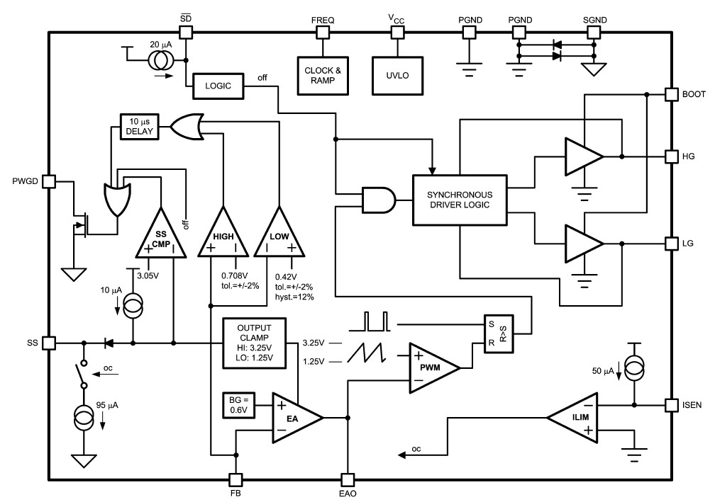 The LM2742MTCX is an N-channel FET synchronous buck regulator controller for low output voltage. The LM2742MTCX is a high-speed, synchronous, switching regulator controller. It is intended to control currents of 0.7A to 20A with up to 95% conversion efficiencies. Power up and down sequencing is achieved with the power-good flag, adjustable soft-start and output enable features. The LM2742MTCX operates from a low-current 5V bias and can convert from a 1V to 16V power rail. The part utilizes a fixedfrequency, voltage-mode, PWM control architecture and the switching frequency is adjustable from 50kHz to 2MHz by setting the value of an external resistor. Current limit is achieved by monitoring the voltage drop across the onresistance of the low-side MOSFET, which enables on-times on the order of 40ns, one of the best in the industry. The wide range of operating frequencies gives the power supply designer the flexibility to fine-tune component size, cost, noise and efficiency. The adaptive, non-overlapping MOSFET gate-drivers and high-side bootstrap structure helps to further maximize efficiency. The high-side power FET drain voltage can be from 1V to 16V and the output voltage is adjustable down to 0.6V.
