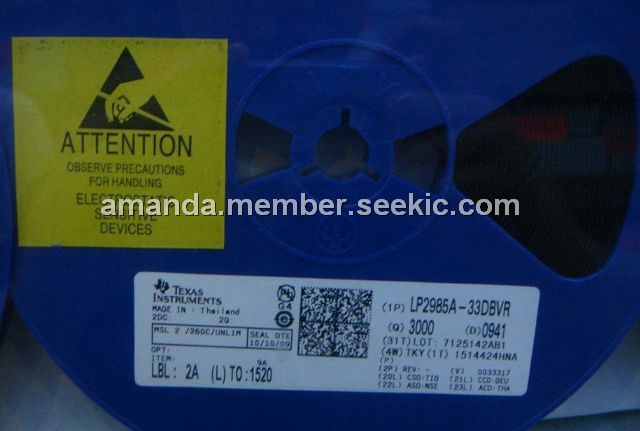 LP2985A-33DBVR features: (1)Wide VIN Range: 6 V Max; (2)Low IQ: 850 mA at Full Load at 150 mA; (3)Shutdown Current: 0.01 mA Typ; (4)Low Noise: 30 mVRMS With 10-nF Bypass Capacitor; (5)Stable With Low-ESR Capacitors, Including Ceramic; (6)Overcurrent and Thermal Protection; (7)High Peak-Current Capability.