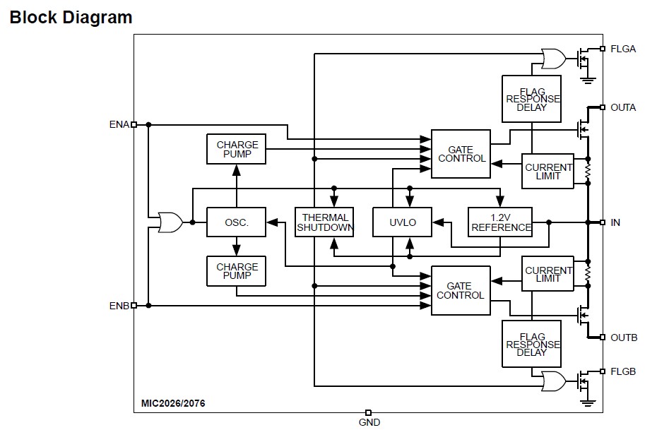 The MIC2026-1YM is a high-side MOSFET switch optimized for general-purpose power distribution requiring circuit protection. The MIC2026/76 are internally current limited and have thermal shutdown that protects the device and load. The MIC2026-1YM offers “smart” thermal shutdown that reduces current consumption in fault modes. When a thermal shutdown fault occurs, the output is latched off until the faulty load is removed. Removing the load or toggling the enable input will reset the device output. Both devices employ soft-start circuitry that minimizes inrush current in applications where highly capacitive loads are employed.