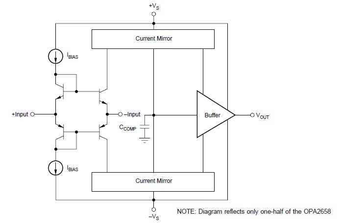 OPA2658U absolute maximum ratings: (1)Supply Voltage: ±5.5V; (2)Internal Power Dissipation: See Thermal Characteristics; (3)Differential Input Voltage: ±1.2V; (4)Input Voltage Range: ±VS; (5)Storage Temperature Range: P, U, UB, E: –40℃ to +125℃; (6)Lead Temperature (DIP, soldering, 10s): +300℃; (7)(SO-8 and MSOP-8, soldering, 3s): +260℃; (8)Junction Temperature (TJ ): +175℃.