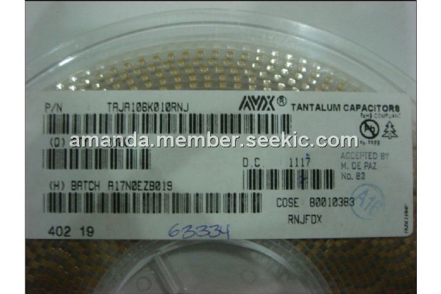 TAJA106K010RNJ absolute maximum ratings: (1)Capacitance: 10uF; (2)Voltage: 10V; (3)ESR: 3Ohms; (4)Height: 1.8mm; (5)Operating temperature range: -55 to +125℃; (6)Leakage current: 1uAmp.