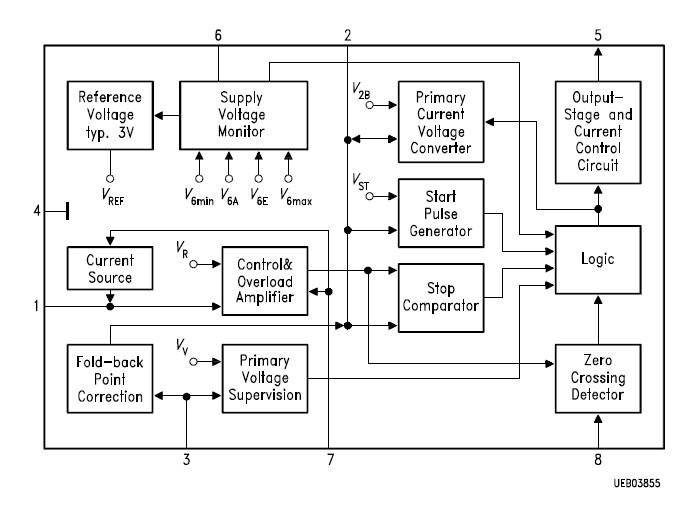 The TDA4605-3 is a control IC for switched-mode power supplies using MOS-transistor. It controls the MOS-power transistor and performs all necessary control and protection functions in free running flyback converters. Because of the fact that a wide load range is achieved, the TDA4605-3 is applicable for consumer as well as industrial power supplies.